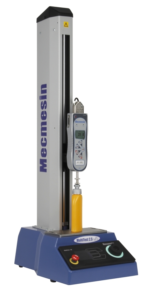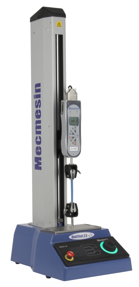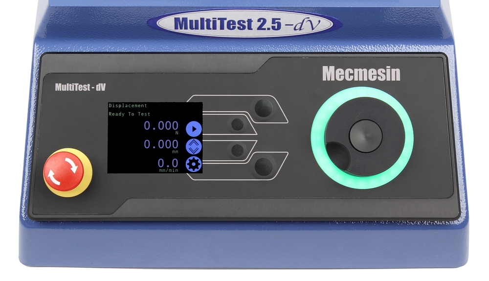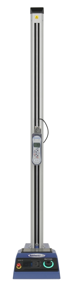 Motorický stojan model MULTITEST 0.5-dV, maximální síla 500N, posuv příčníku plynule regulovatelný 0.1-1200mm/min, digitální měření posuvu s rozlišením 0.001mm, funkce: ruční řízení / jeden cyklus / cyklování, zobrazení posuvu a rychlosti na displeji, možnost ovládání ze siloměru AFG, stavitelný horní a dolní doraz, výstup na počítač, lze upevnit siloměry MECMESIN model AFG a BFG, možnost činnosti v horizontální poloze. Maximální posuv 1200mm.
