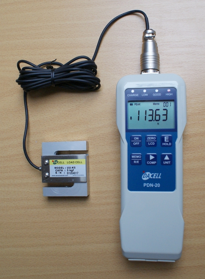 Ruční digitální zobrazovací jednotka PDN-20 je určena k připojení externích snímačů síly (tenzometrů), rozlišení volitelné, přesnost dle připojeného snímače, paměť maximální hodnoty v tahu/tlaku (snímače síly) nebo moment vpravo/vlevo (snímače momentu), rychlost měření 100Hz, bateriové napájení, paměť pro 500 hodnot, signalizace přetížení, USB výstup na počítač, robustní aluminový kryt, LED signalizace OK/NOK, digitální výstupy, analogový výstup.